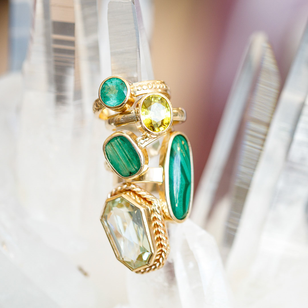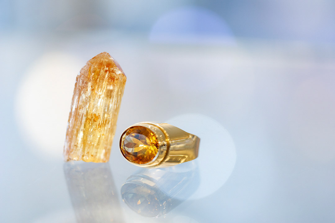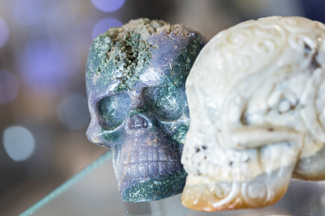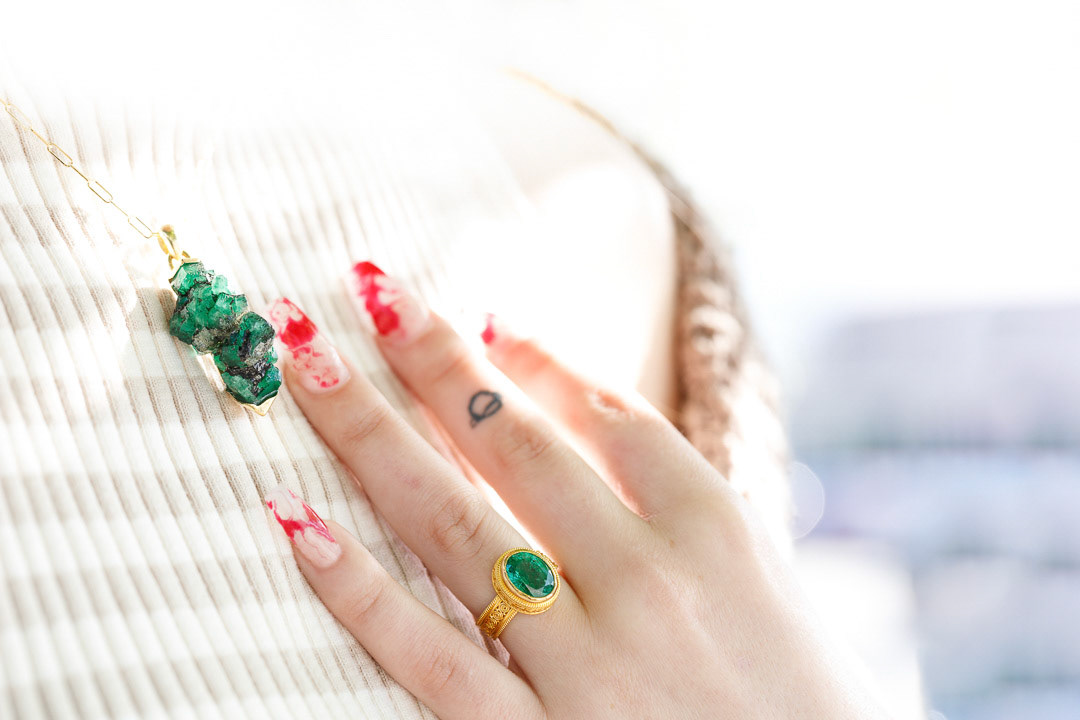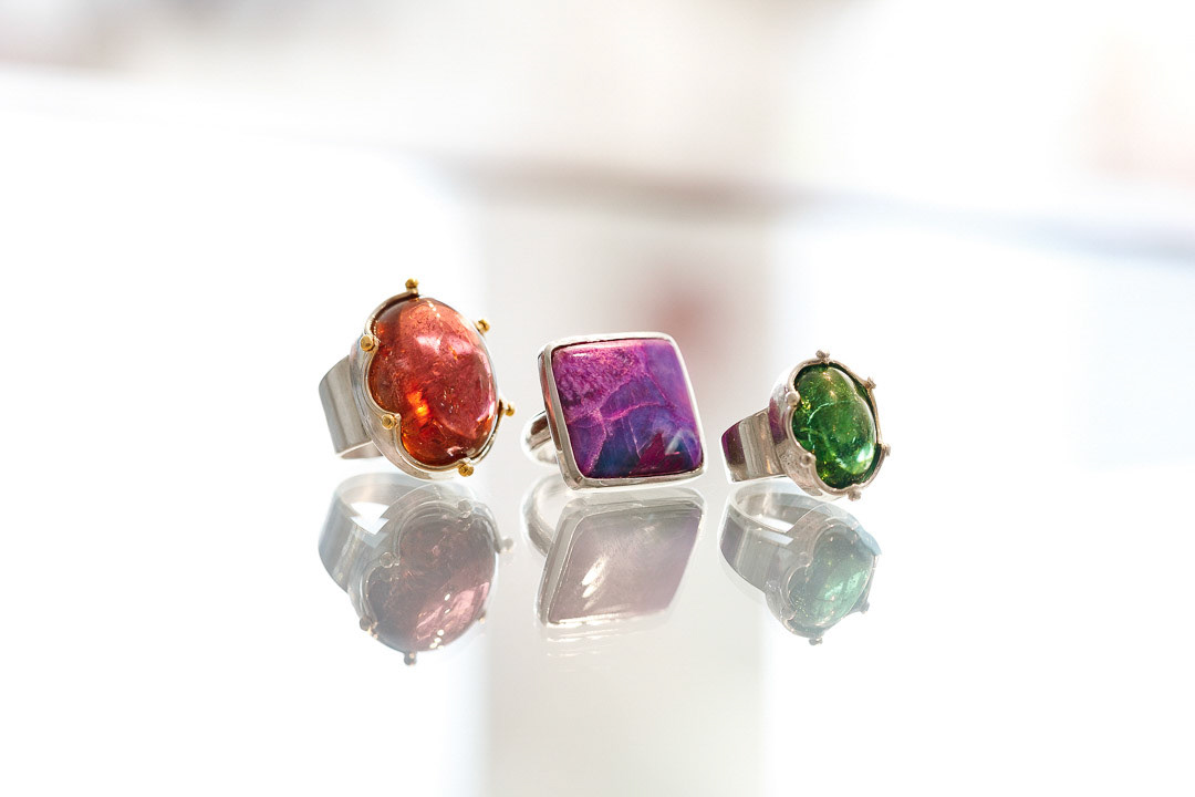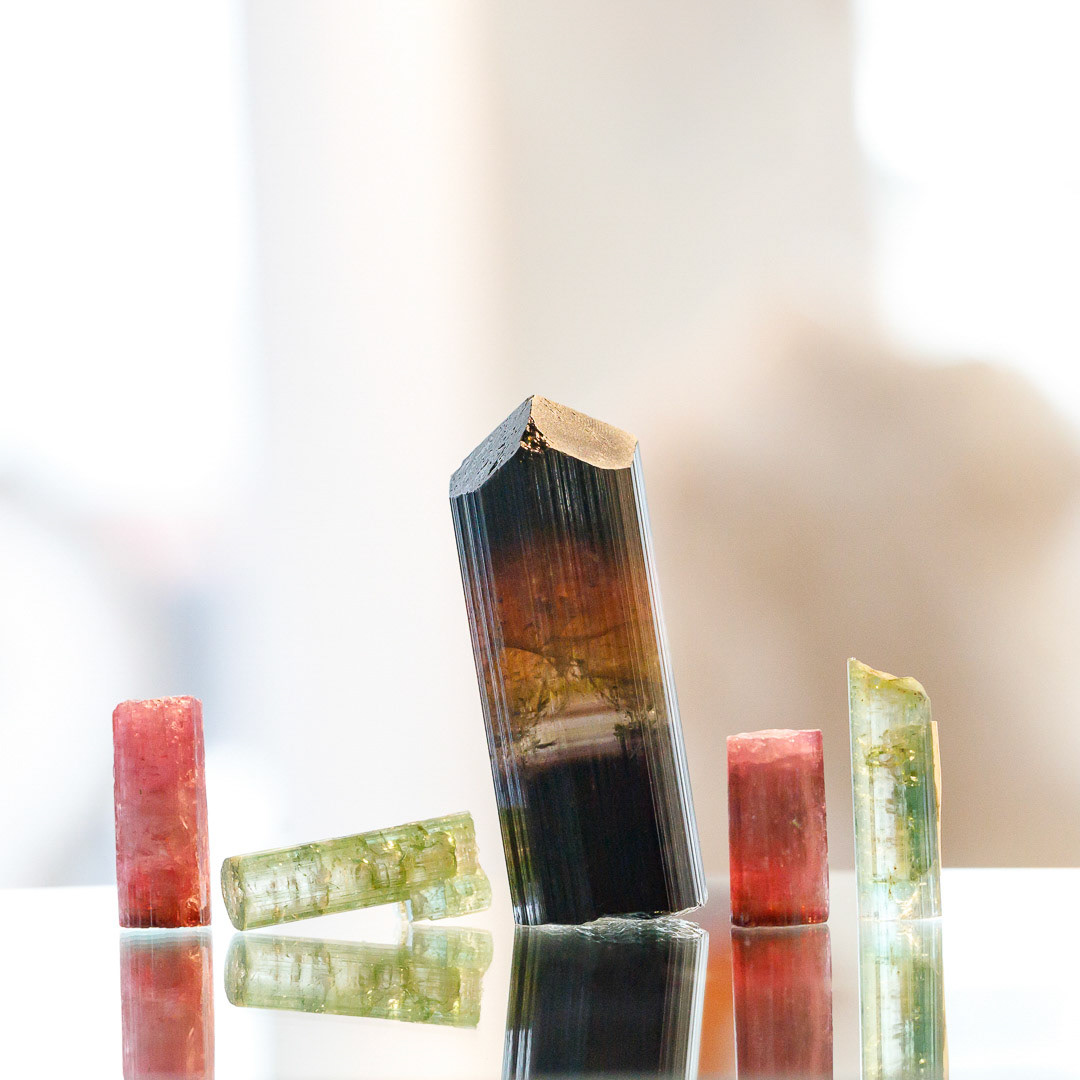 Lifestyle and product photography of an assortment of fine jewelry and mineral specimens